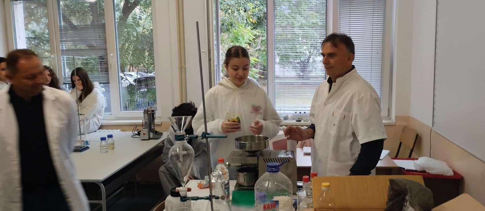 Продолжуваме со настани на отворено со караванот за демонстрирање на експерименти во училиштата односно „Работилница за повторна употреба и пренамена на био-отпад за ученици” кои ги рализираме со ученици од 20 основни училишта од Скопскиот регион. На 7.10.2025 го посетивме ООУ “ Христијан Тодоровски Карпош” од општина Карпош кадешто триесетина ученици од основното училиште придружени од 4 волонтери соученици кои им асистираа на нашите Експерти имаа можност да се запознаат со опремата од Биотехнолошката Лабораторија и заедно да изведуваме експеримети за пренамена на органскиот отпад.