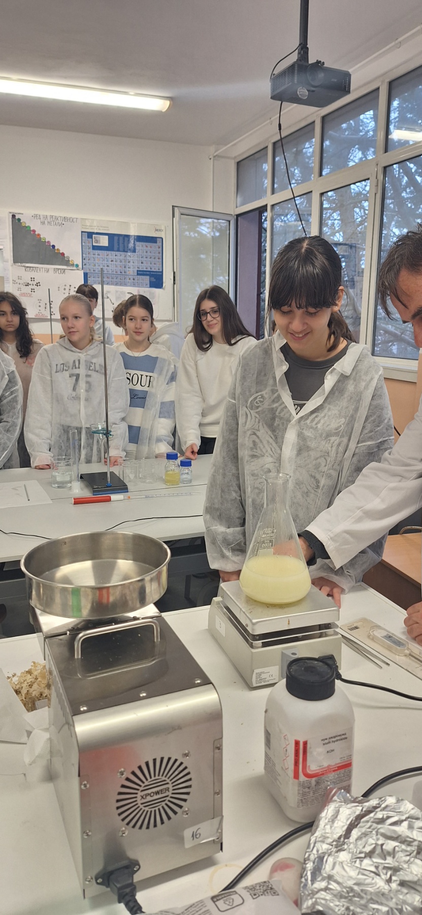 💡Од што се добива пластиката ги прашавме учениците? За што се користи глицеринот и ладно цедените масла? Заедно научивме и согледавме некои нови работи со учениците од „Вера Циривири – Трена”. Младите научници многу внимателно ги следеа и извршуваа насоките на Експертите во изработка на експериментите.